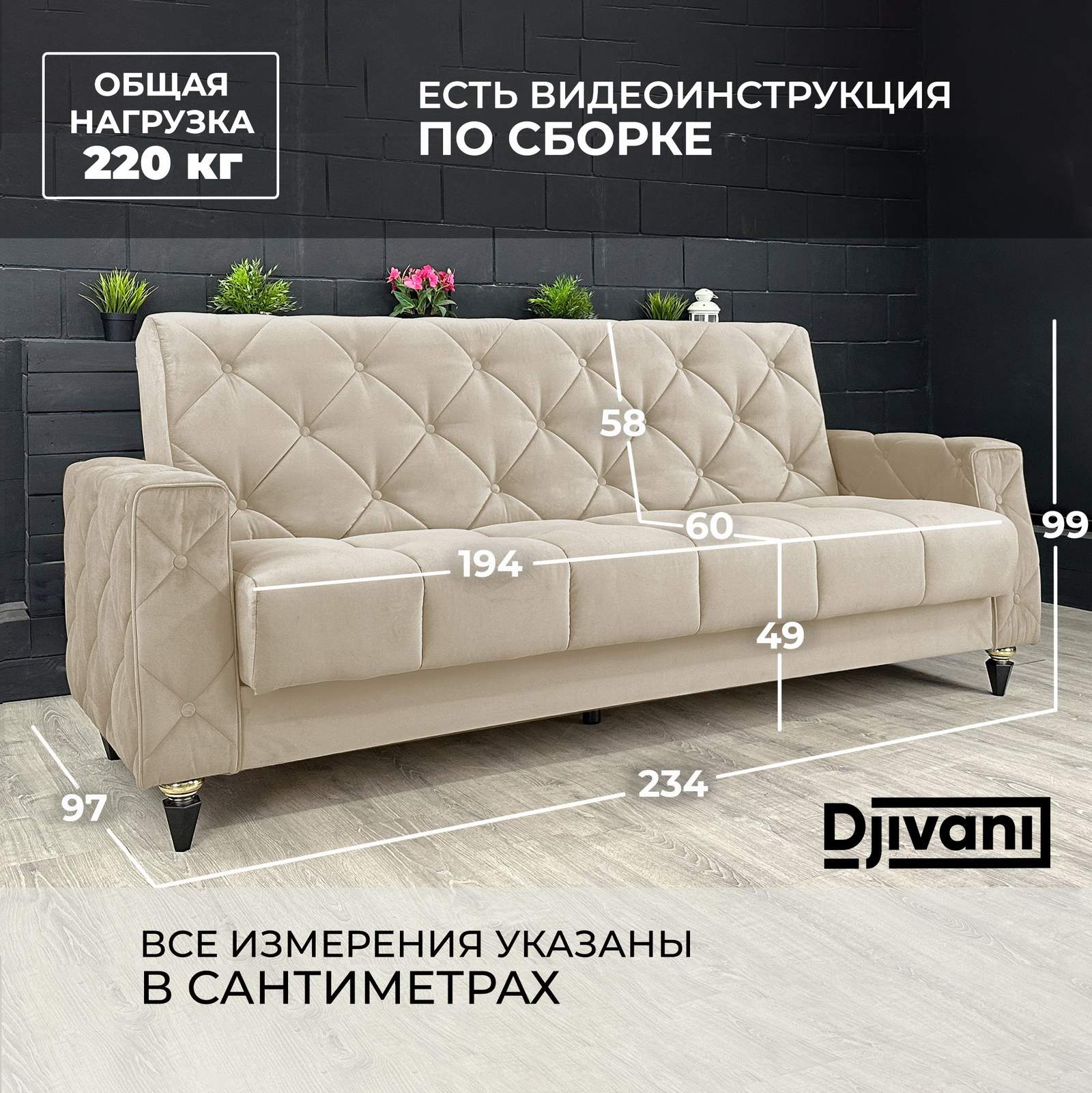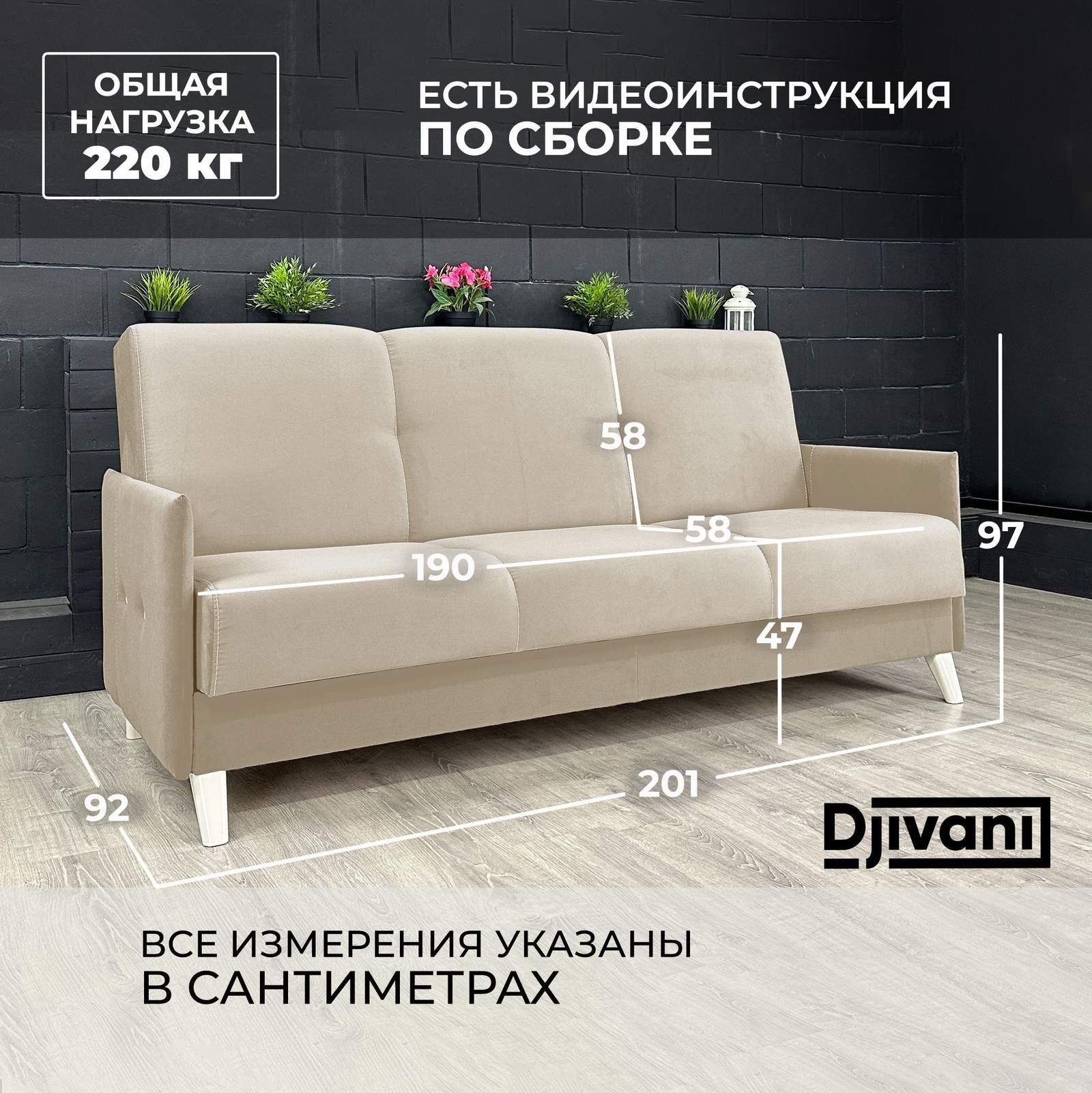 220 x 92 x 97 см