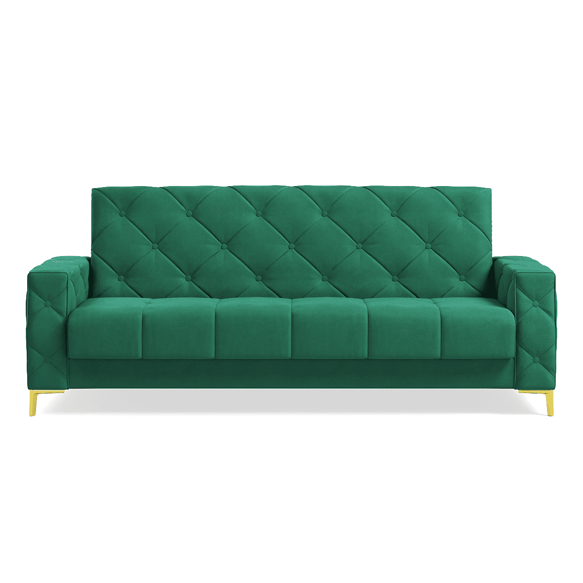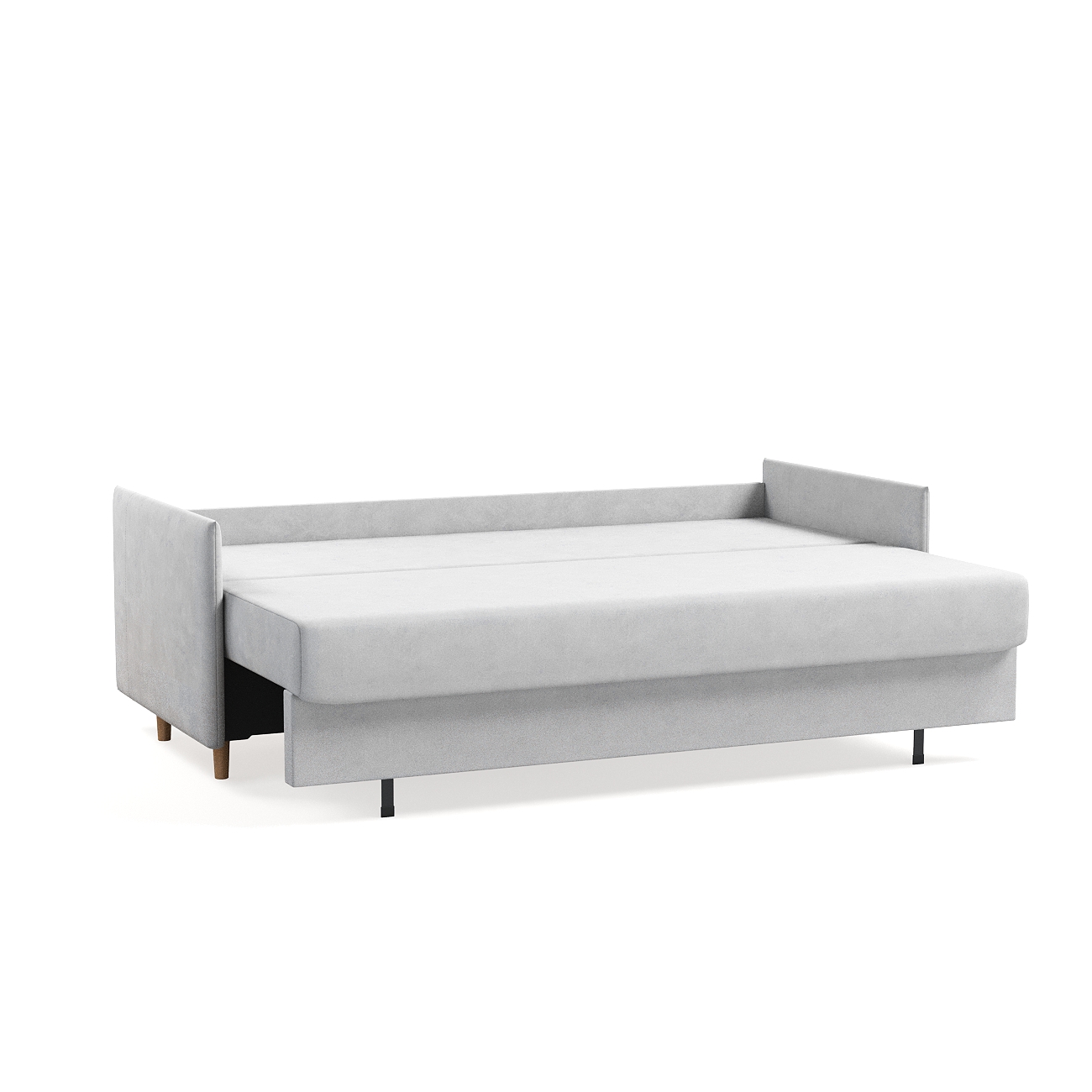 Диван оснащен механизмом трансформации «книжка», что позволяет легко и быстро превратить его в просторное спальное место размером 190×120 см. Максимальная нагрузка на диван составляет 220 кг, что делает его подходящим для людей разного телосложения.