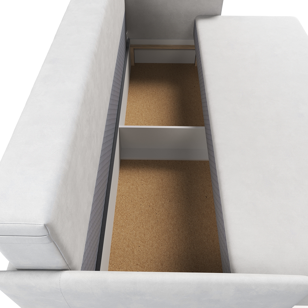 Диван оснащен мягкими подлокотниками, которые добавляют уют и удобство при использовании. В диване также предусмотрен ящик для белья, что позволяет сэкономить пространство и поддерживать порядок.
