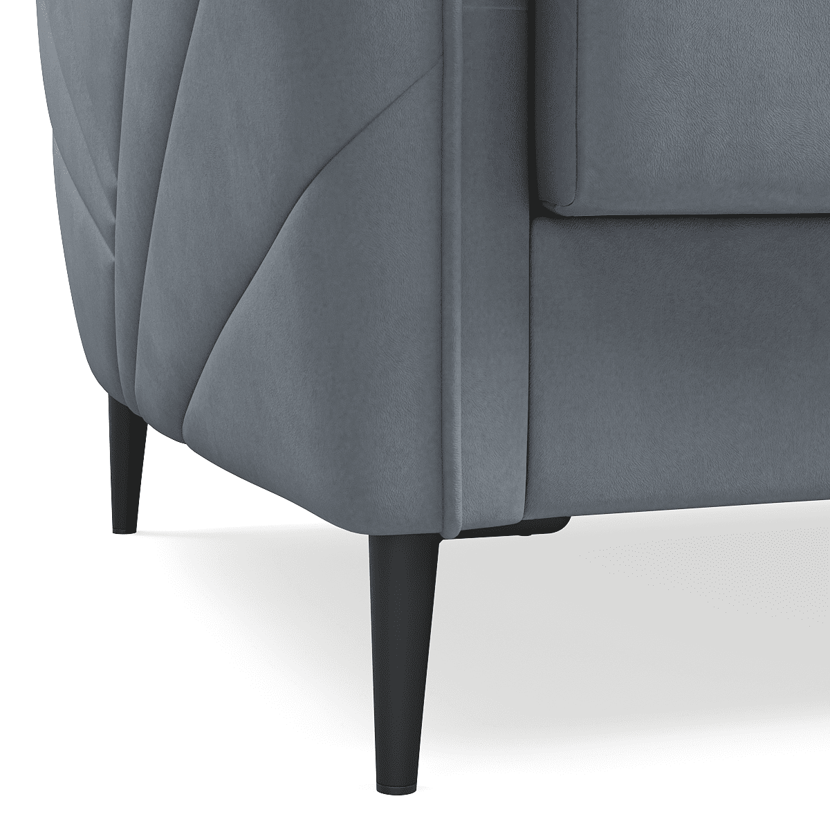 Диван выполнен в однотонном велюре, что позволяет ему гармонично вписаться в любой интерьер. Велюровая обивка придает дивану изысканный вид и обеспечивает приятные тактильные ощущения.