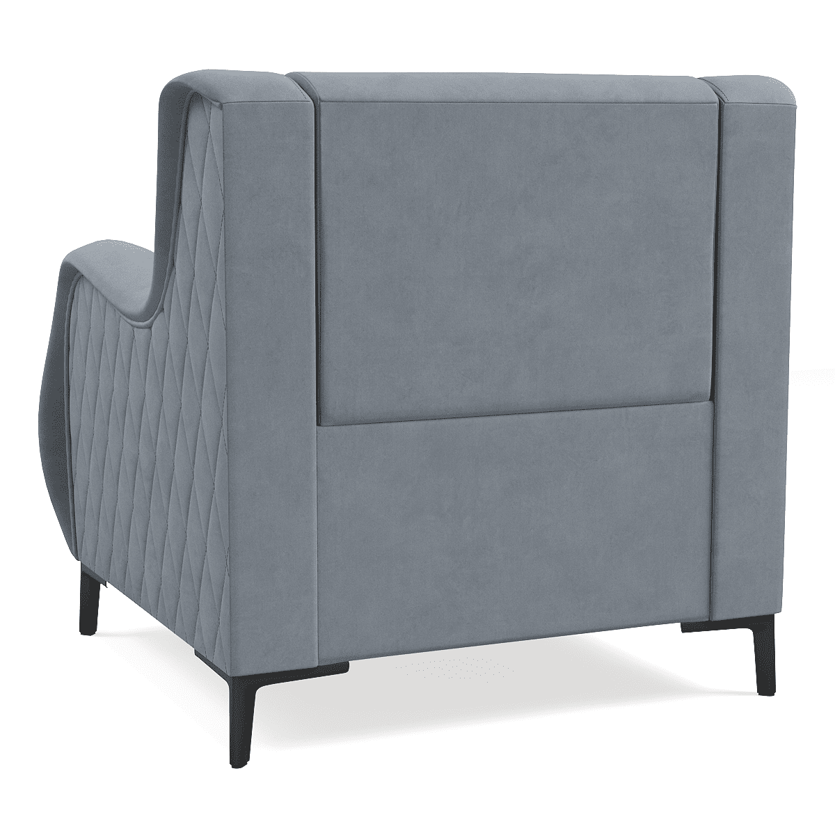 Кресло выполнено в современном стиле, который сочетает в себе минимализм и простоту линий. Обивка из однотонного велюра придает креслу изысканный и элегантный вид.